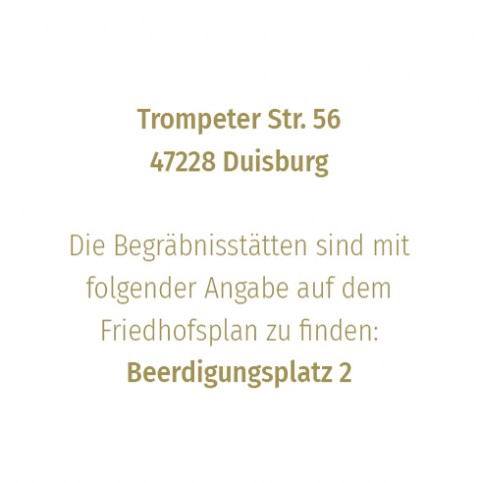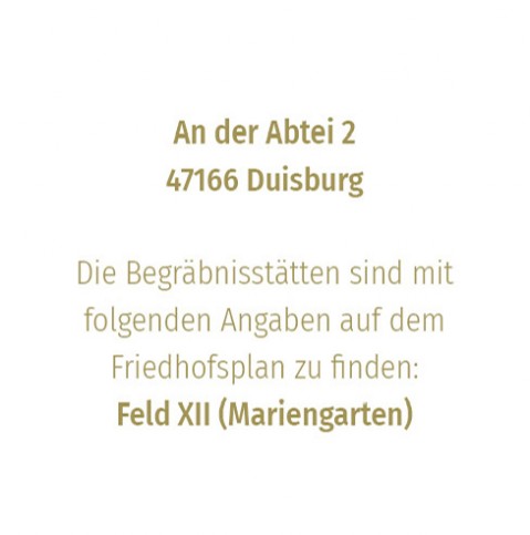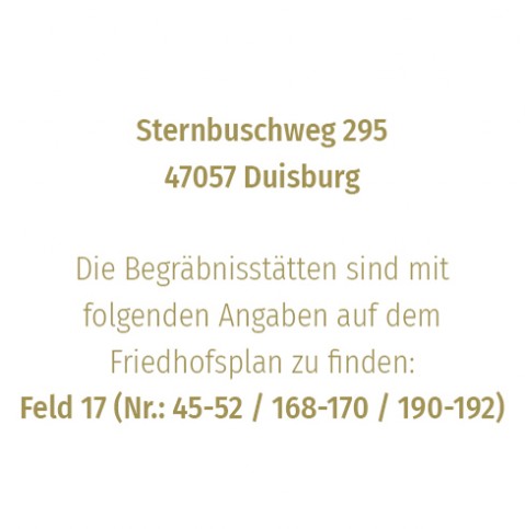Um diesem Bedürfnis gerecht zu werden, sind auf verschiedenen Duisburger Friedhöfen gesonderte Ruhestätten für Sternenkinder geschaffen worden. Hier sollen Betroffene in Ruhe verweilen und trauern können, ohne sich um eine Grabstätte oder deren Kosten kümmern zu müssen.